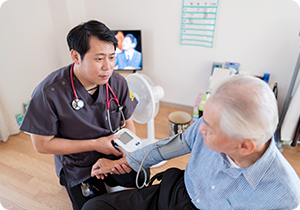 必要に応じて点滴や採血、医師の指示による医療処置を実施。ご自宅での暮らしを安心して続けていただけるよう、心身の健康状態は提携医療機関や関係機関とも共有し、質の高い看護を提供しています。